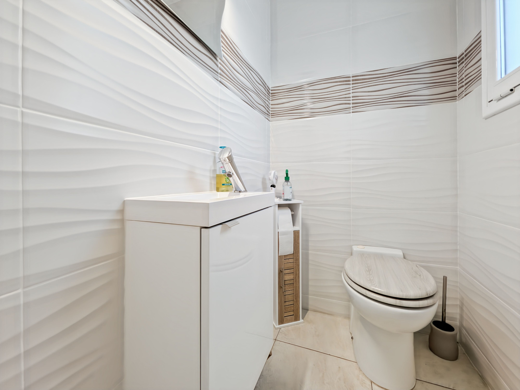 Distribución: en la planta principal, salón-comedor muy luminoso con vistas al mar, cocina equipada con vistas al mar, aseo independiente, terraza. En la planta inferior, 4 dormitorios y 2 baños (uno de ellos con bañera grande + ducha).