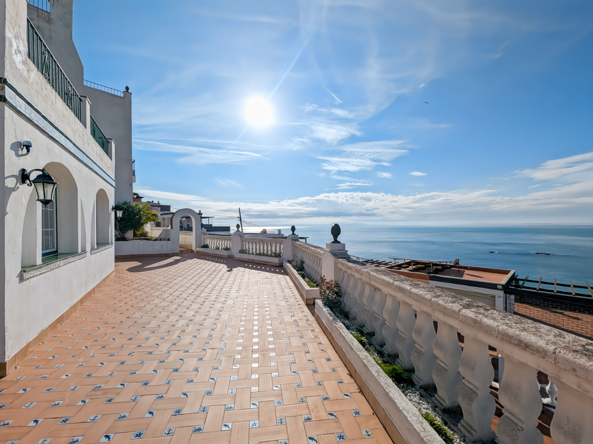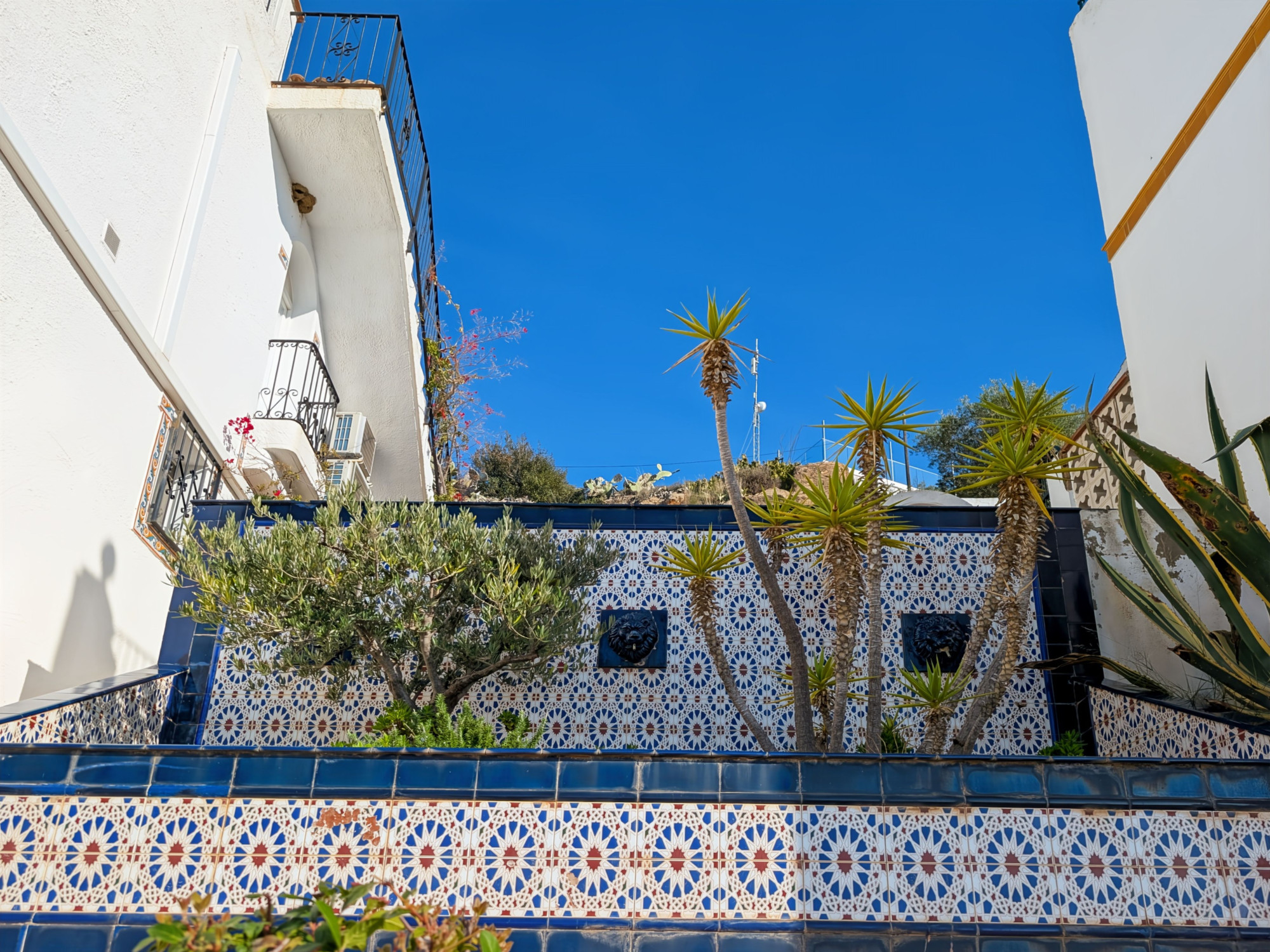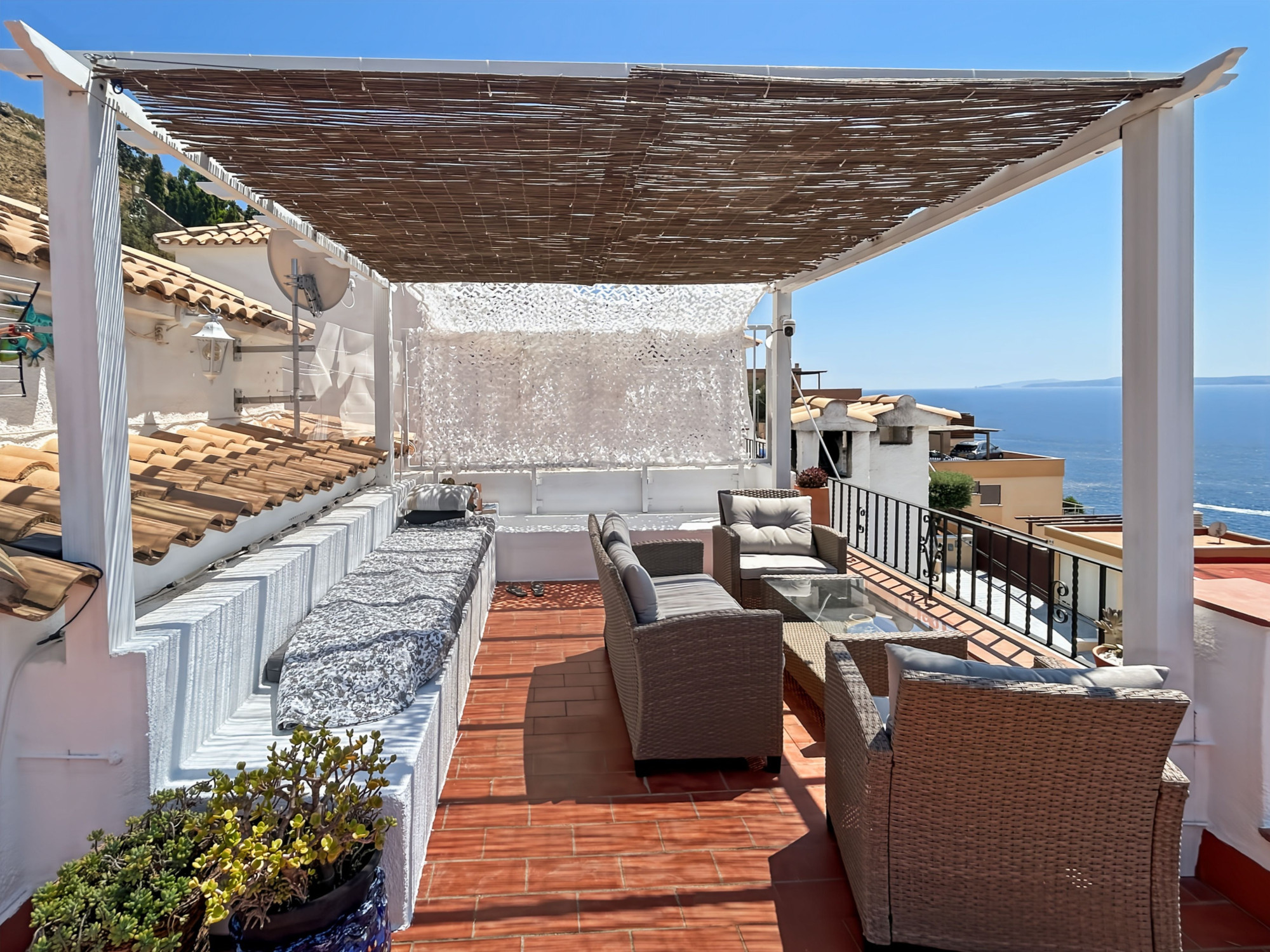 Casa en una magnífica urbanización típica española (aprox. 12 casas) con piscina, bonitas zonas comunes y aparcamiento comunitario. Impresionantes vistas al mar de 180° desde el salón, la terraza, la cocina equipada y las habitaciones.