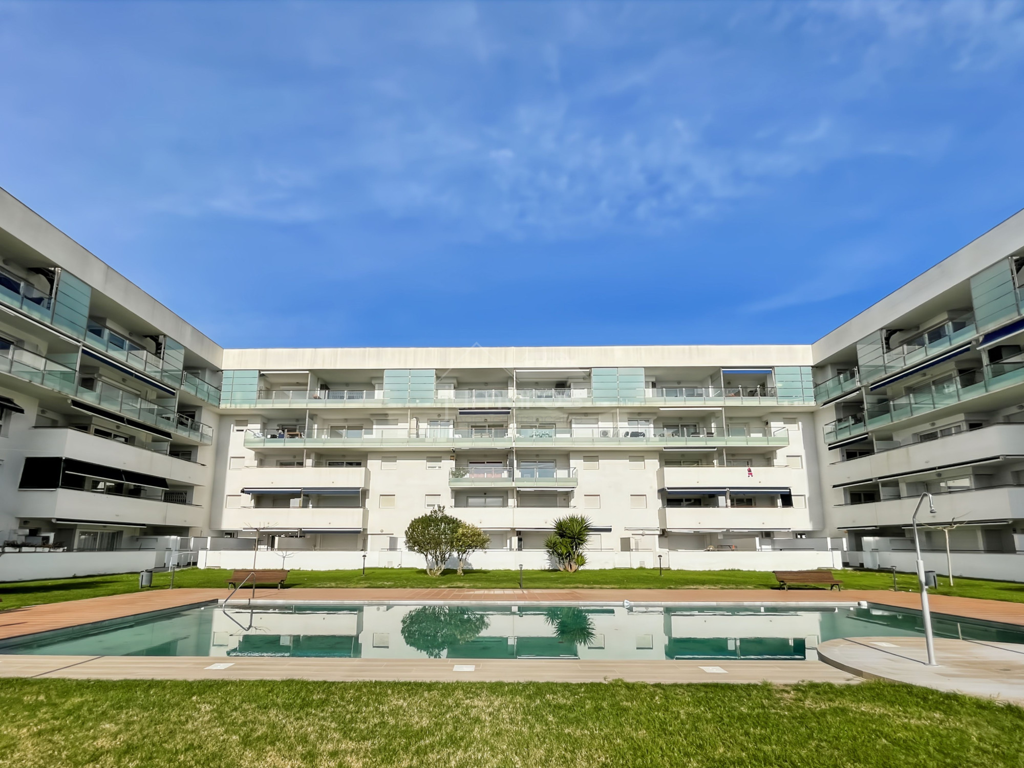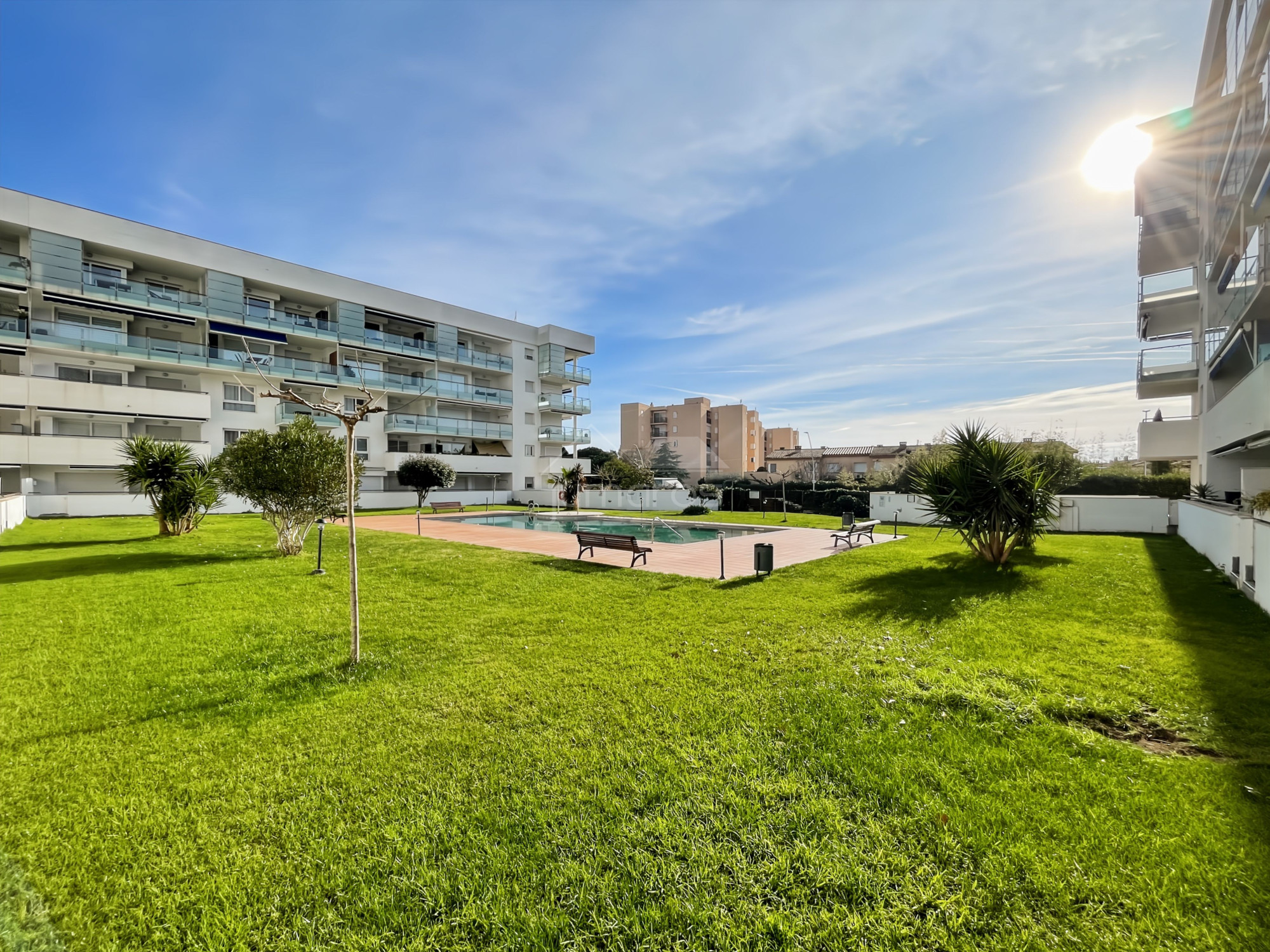 Apartamento de un dormitorio situado en la zona de Santa Margarita, Roses, Costa Brava, en un complejo residencial con ascensor, conserje, piscina y jardín comunitario, a menos de 2 km de la playa.