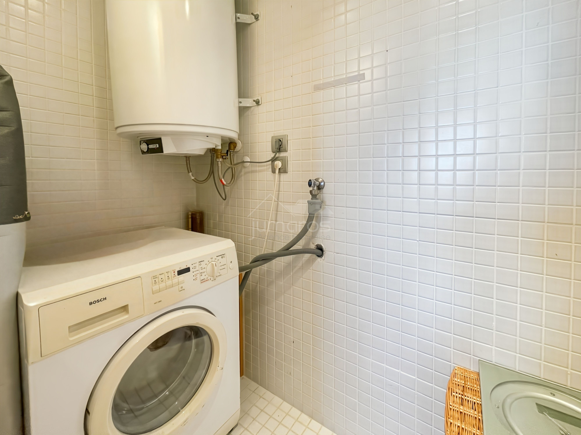 Distribué en deux chambres avec armoires encastrées et fenêtres et une salle de bains complète avec baignoire. Une cuisine américaine entièrement équipée ouverte sur le salon-salle à manger avec accès à une grande terrasse de 12m2 donnant sur le canal. L'appartement dispose également d'une buanderie.