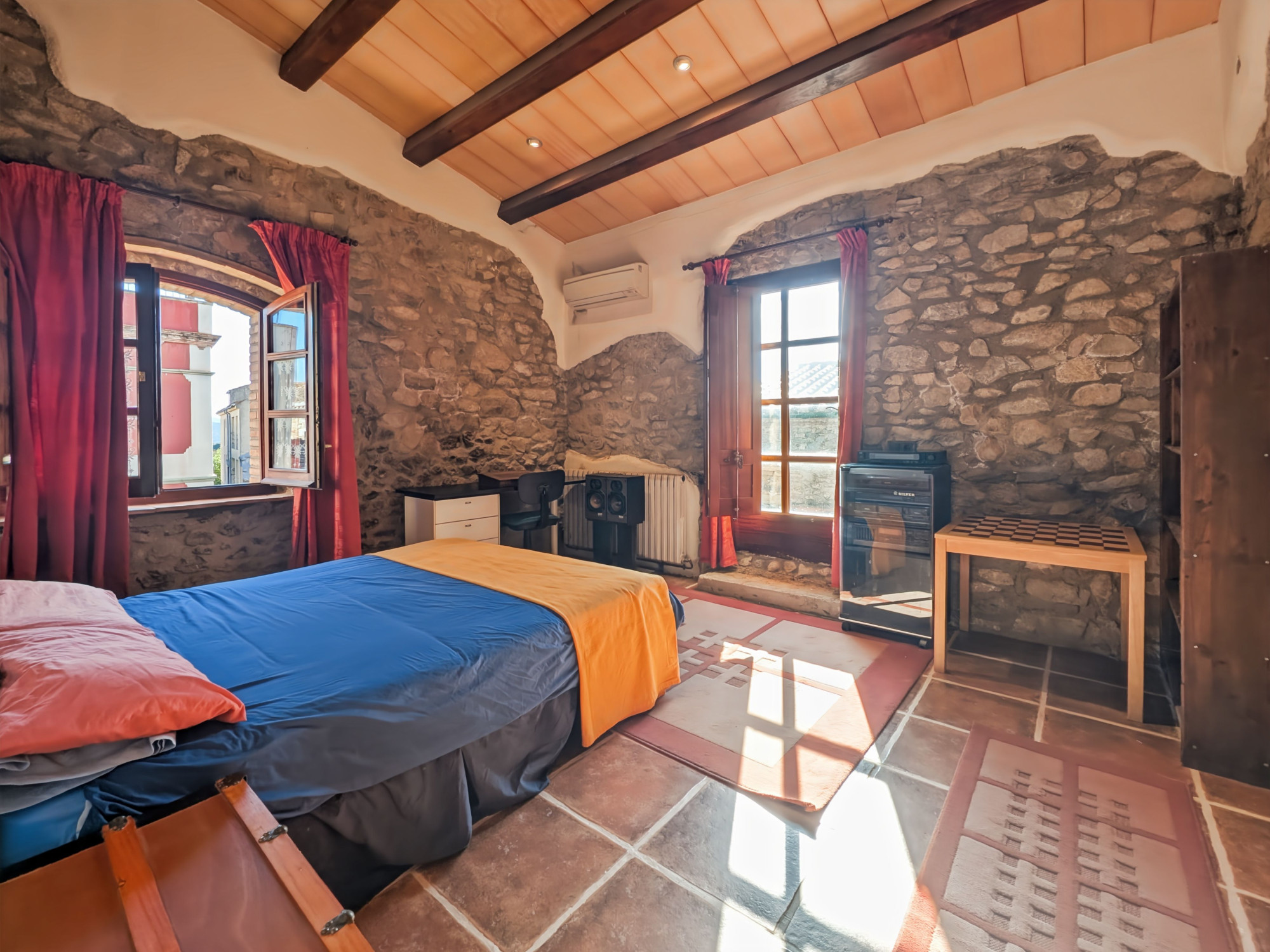 Au centre d’Agullana, petit village des Pyrénées à la frontière franco-catalane, cette maison en pierre de 1740 a été restaurée en 2010 par son propriétaire actuel. Elle associe le charme de l'ancien (murs en pierre, voûtes à la catalane, four à pain d'époque, puits intérieur visible sous une plaque de verre) et des espaces habitables spacieux.