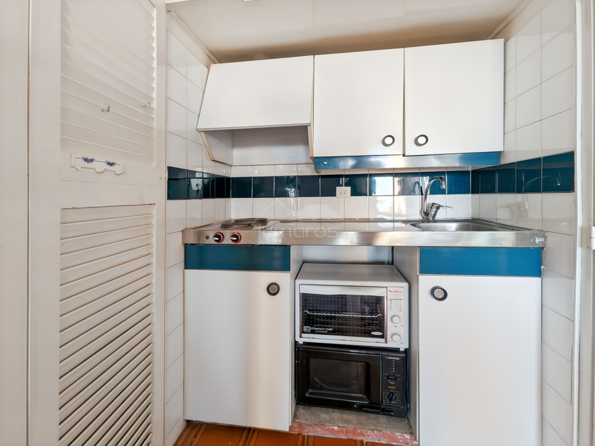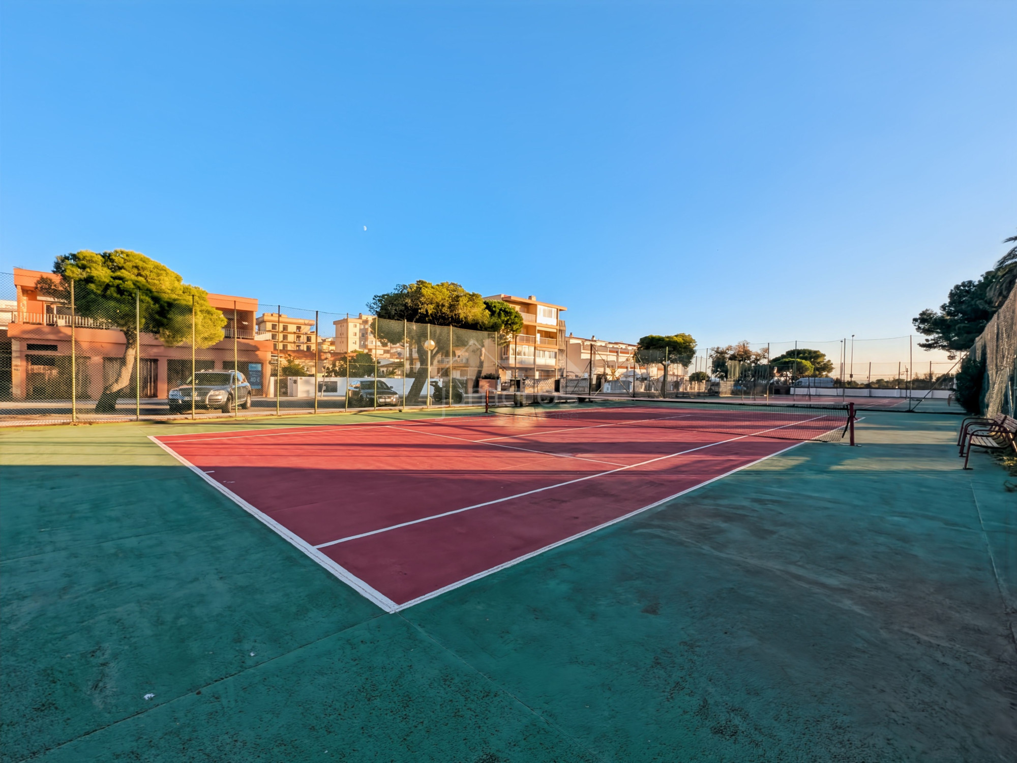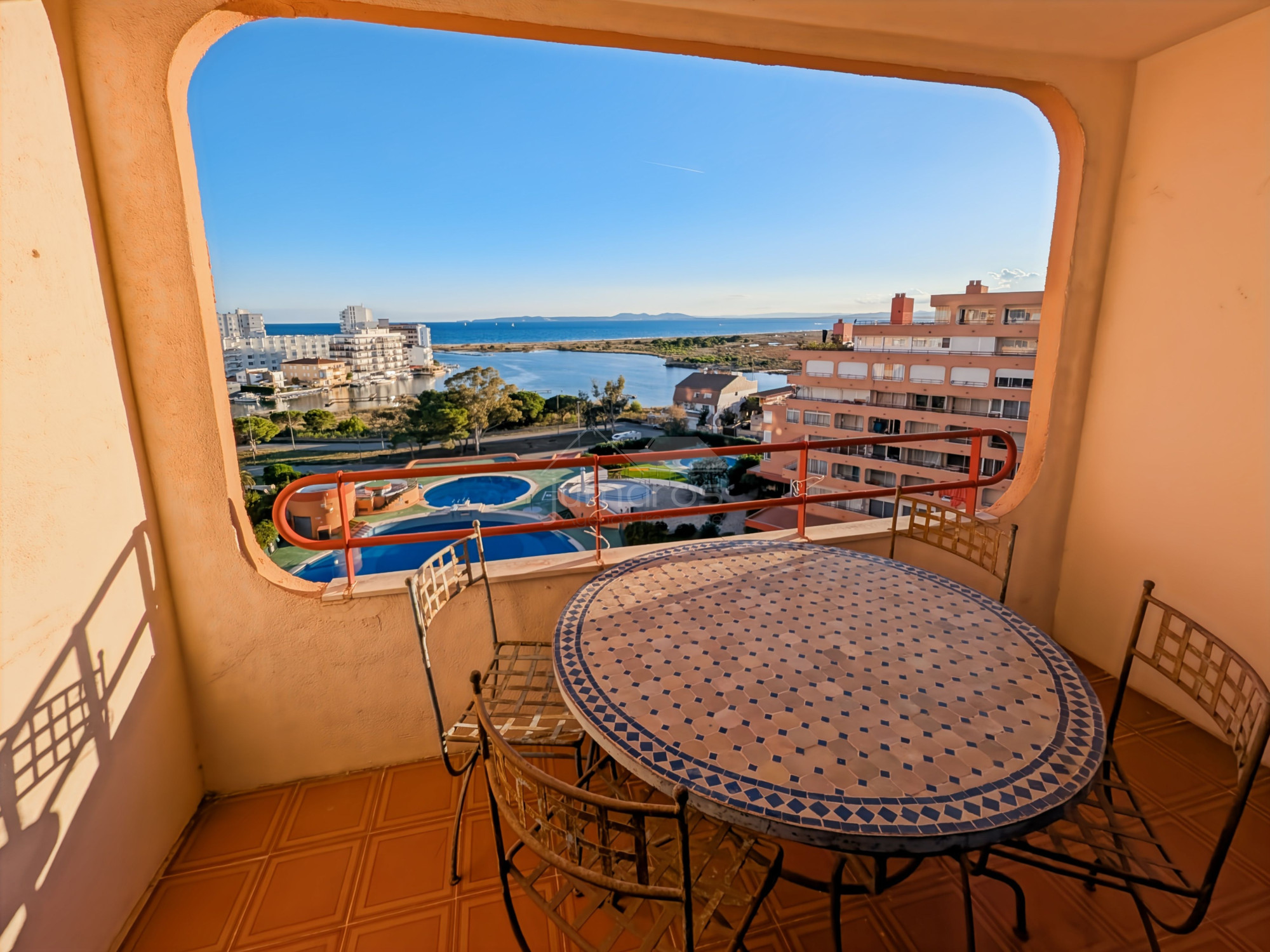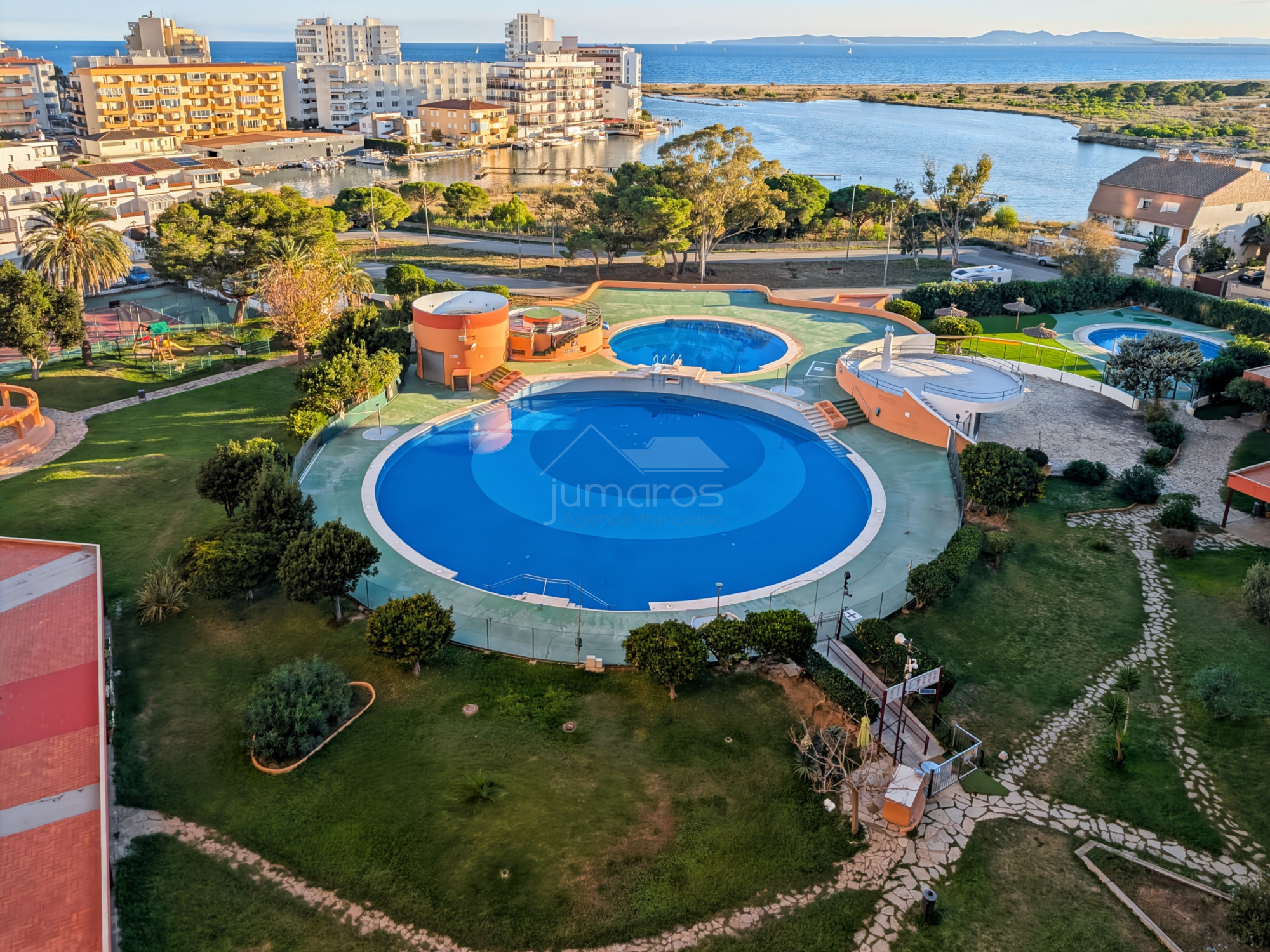 À Santa Margarida (Roses), studio vue mer dans un immeuble sécurisé avec caméras, piscine, tennis, jardin et ascenseur.