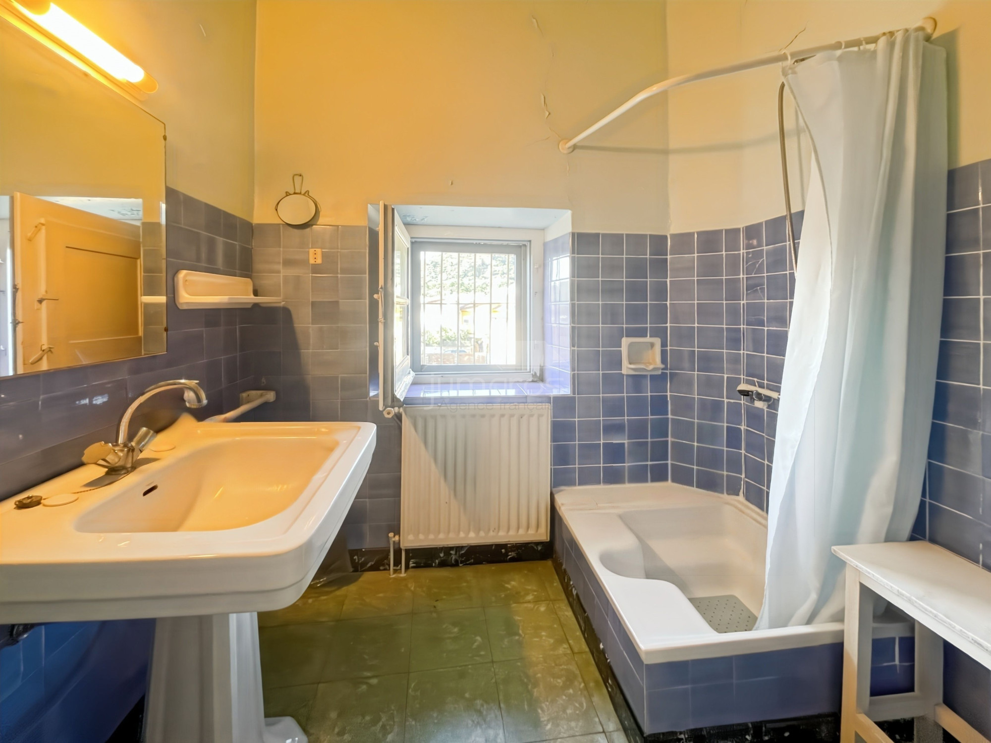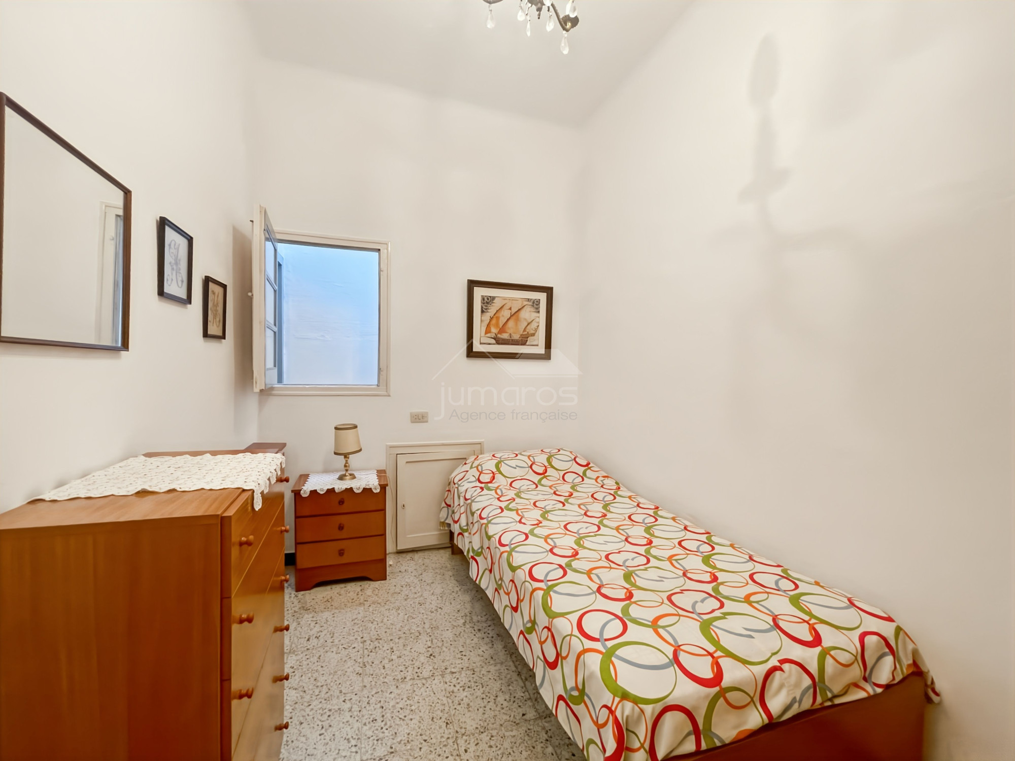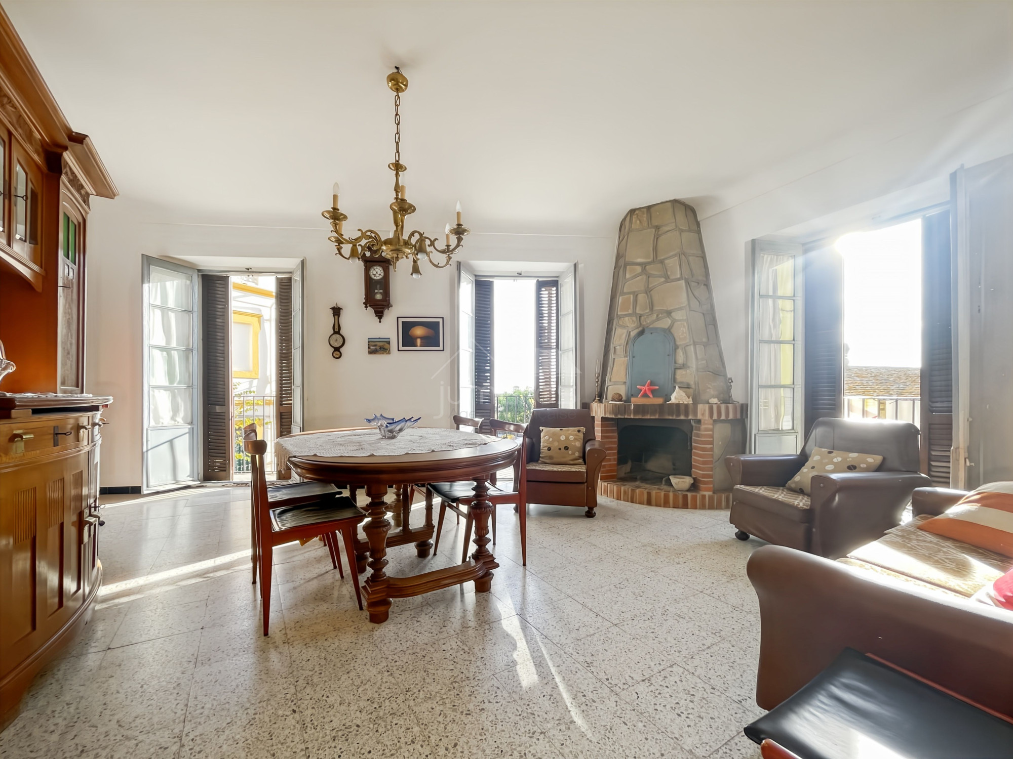 Le premier étage accueille la partie principale de la maison, avec un salon équipé d’une cheminée et ouvert sur des balcons, une cuisine indépendante entièrement équipée, 4 chambres dont trois doubles, ainsi qu’une salle de bains.