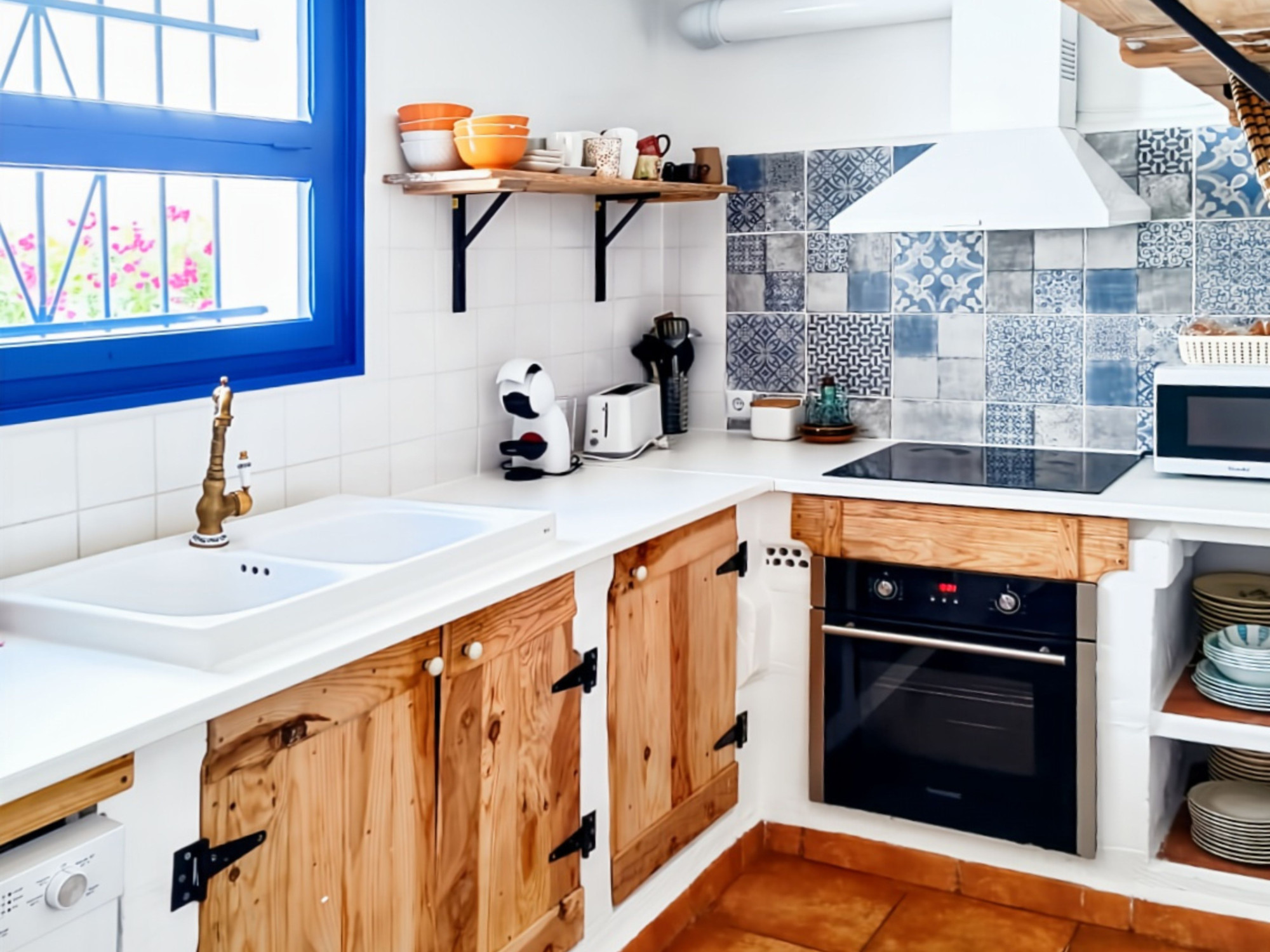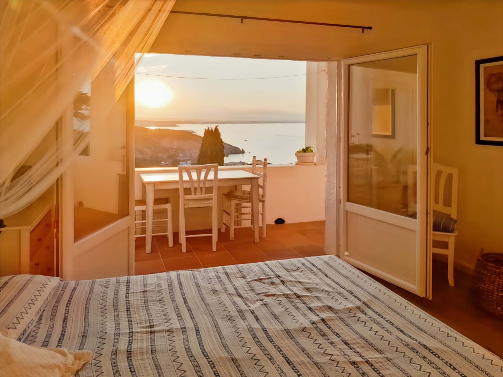 À l'ntérieur, 2 chambres doubles, un salon-salle à manger avec cheminée et vue mer, une cuisine équipée, une salle de bains et toilettes indépendantes.