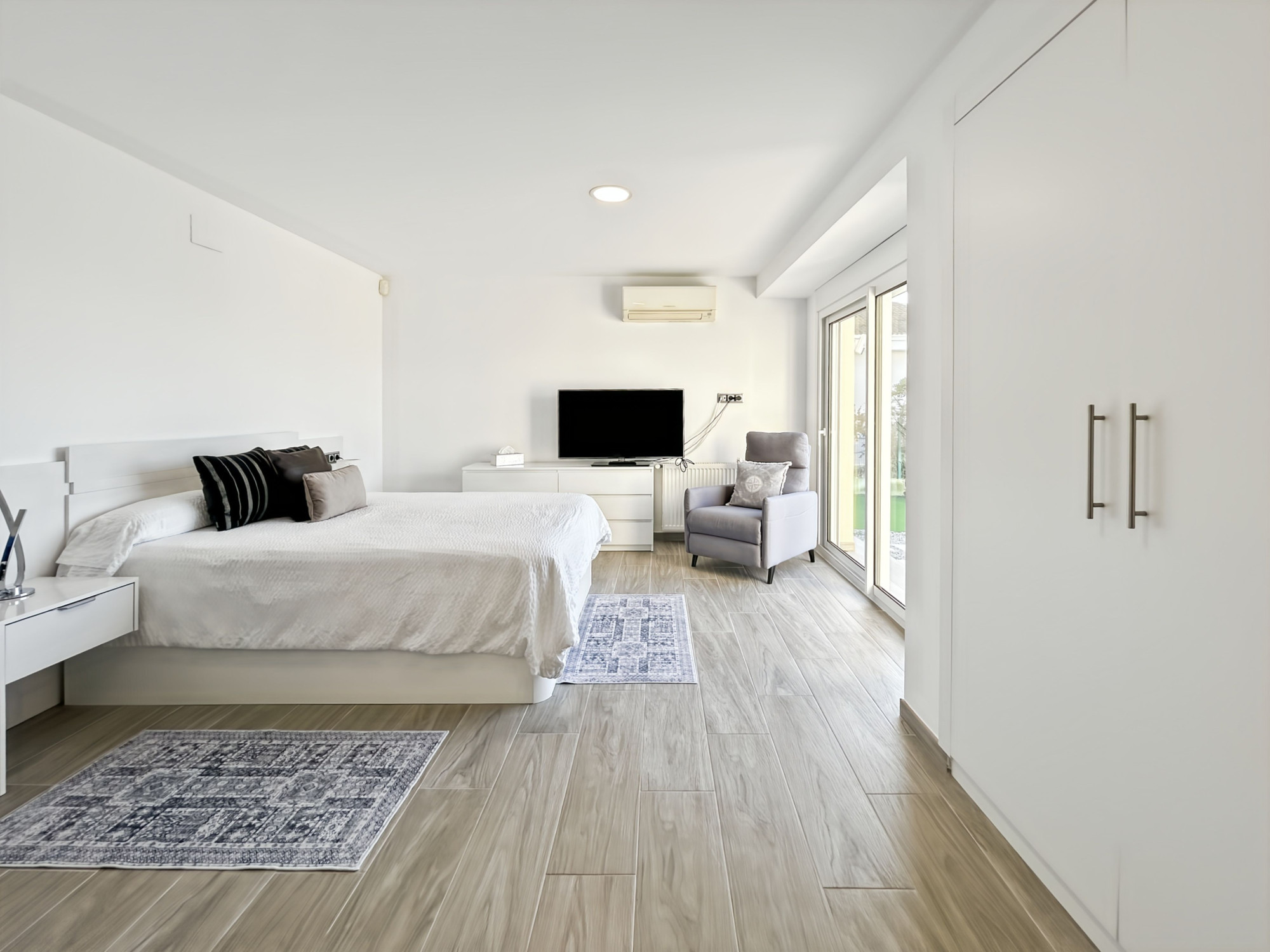L’extérieur s’étend sur un terrain de 1 682 m² avec grand jardin, piscine privée de 10 x 5 m, actuellement au chlore mais il existe un système au sel. Douche extérieure. Zone barbecue aménagée avec store pyramidale et transats. Terrasse couverte aménagée en espace chill-out, entièrement protégée par des moustiquaires électriques escamotables. Éclairage extérieur et points d’eau répartis sur l’ensemble de la propriété. Garage fermé pour un véhicule avec espace de rangement. Plusieurs places de stationnement à l’intérieur de la propriété.