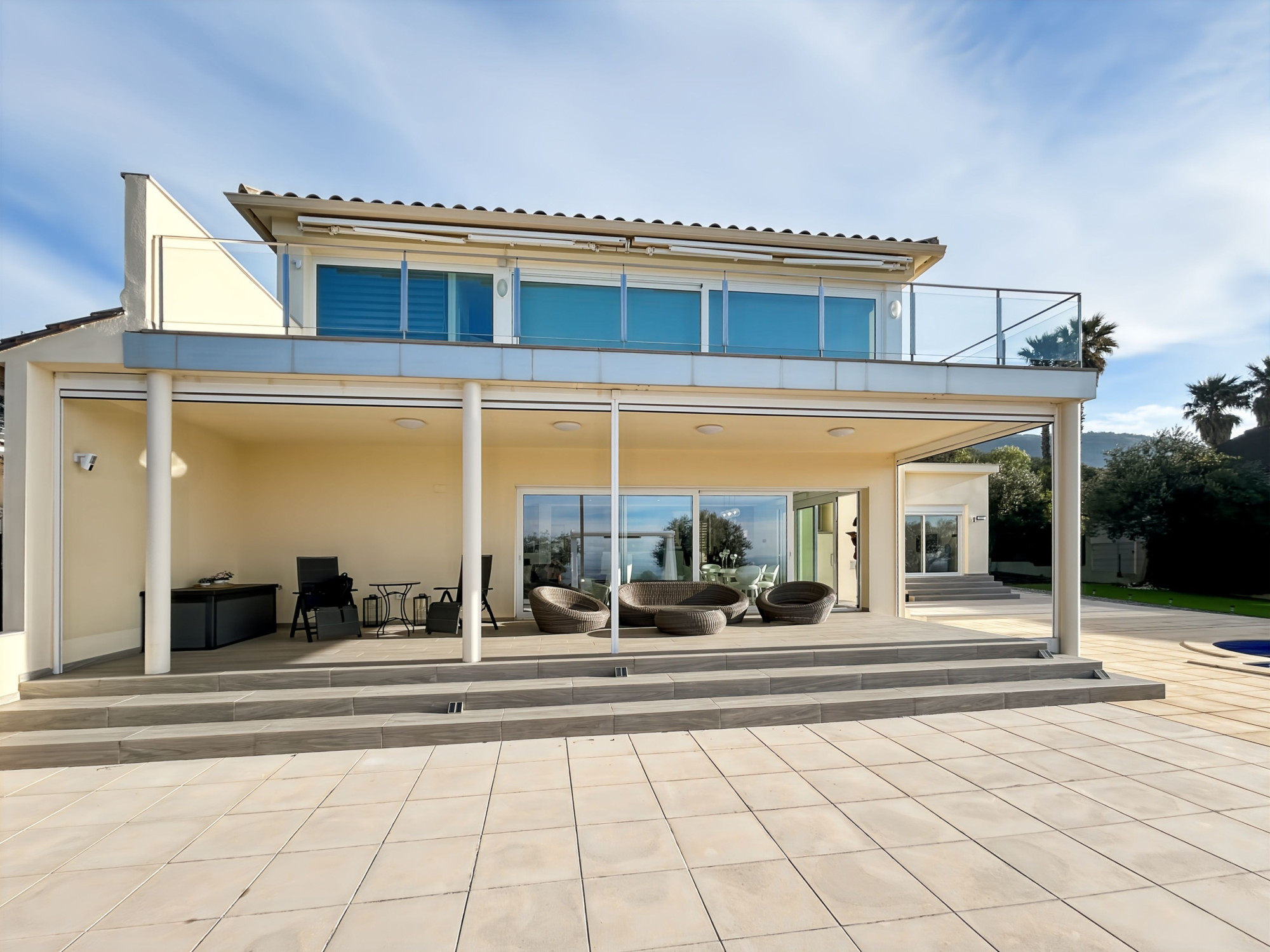 Villa rénovée récemment avec des matériaux de qualité et des équipements complets. Volumes généreux, lumière naturelle omniprésente, exposition sud. Urbanisation Bellavista (Palau-saverdera), une situation calme, à environ 7 minutes en voiture des plages de Roses.
