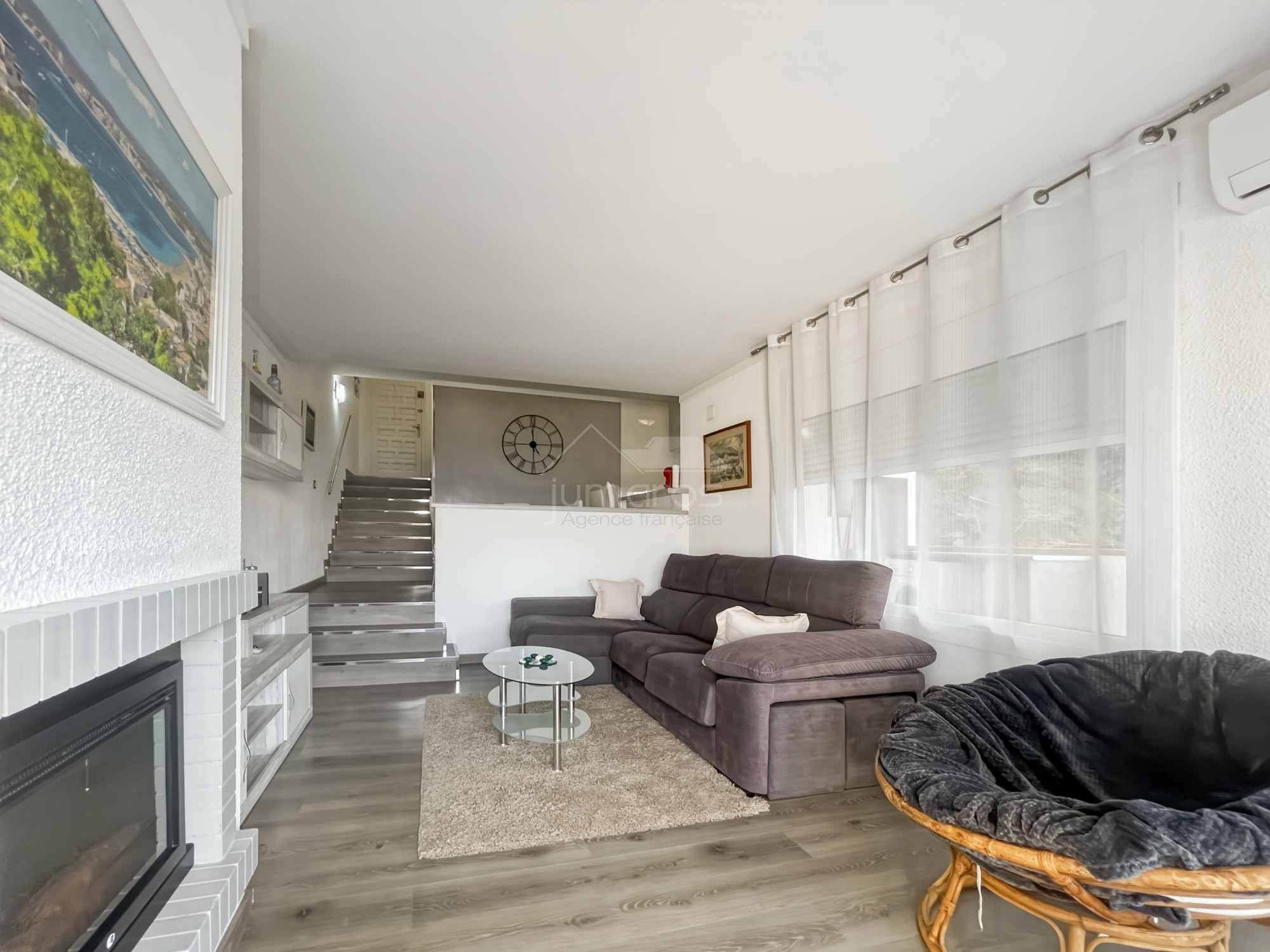 L'appartement est équipé de fenêtres à double vitrage, de fermetures automatiques des fenêtres, d'une cheminée et de la climatisation réversible.