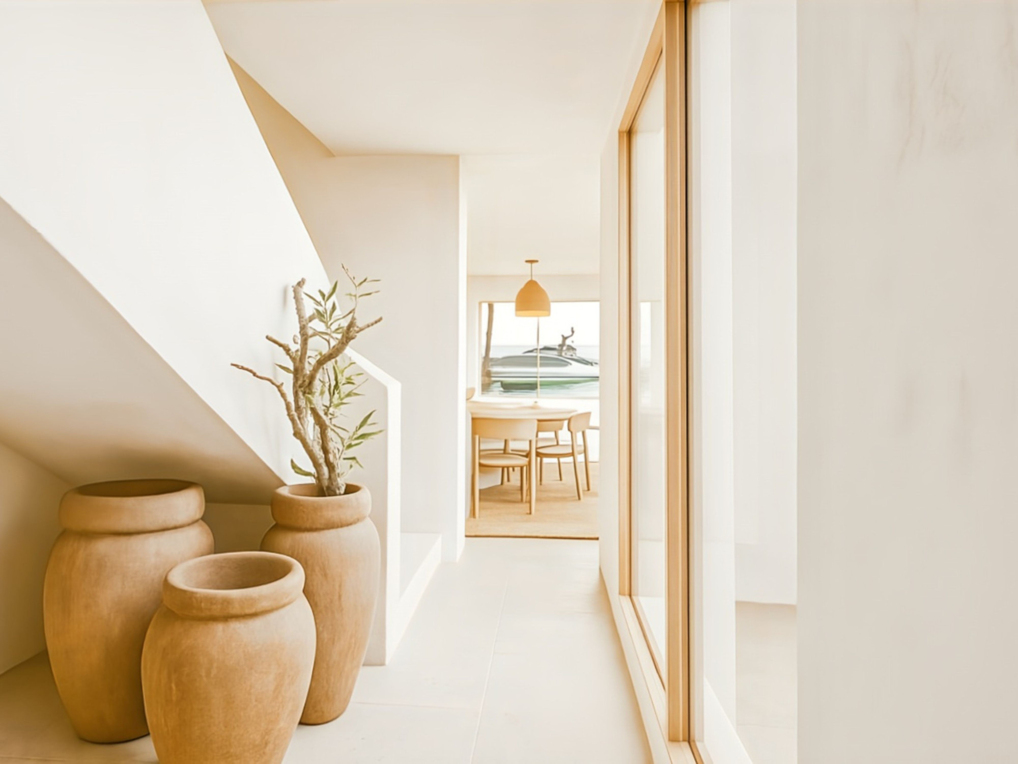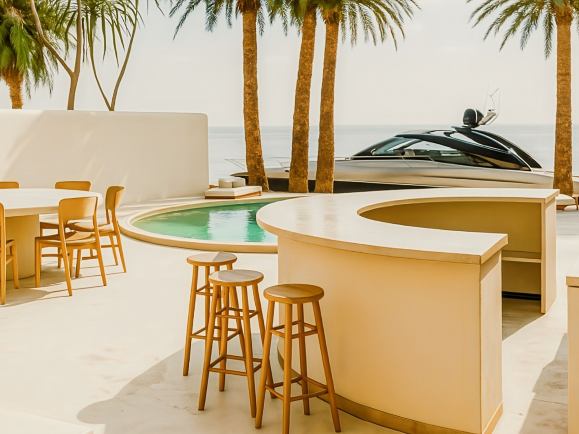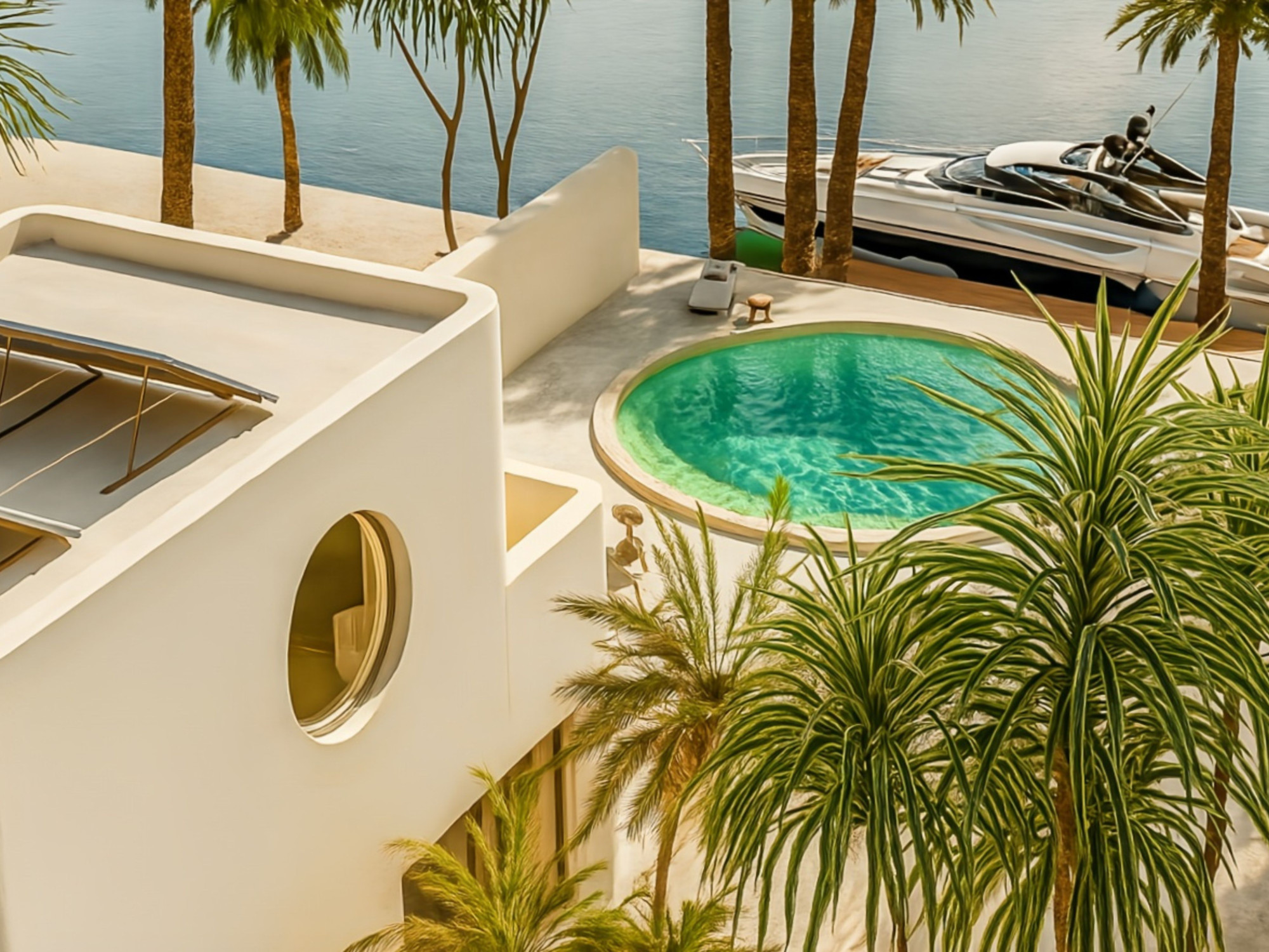 Dehors, les terrasses sont grandes, le bar-barbecue est prêt, et la piscine au sel donne directement sur l'eau.