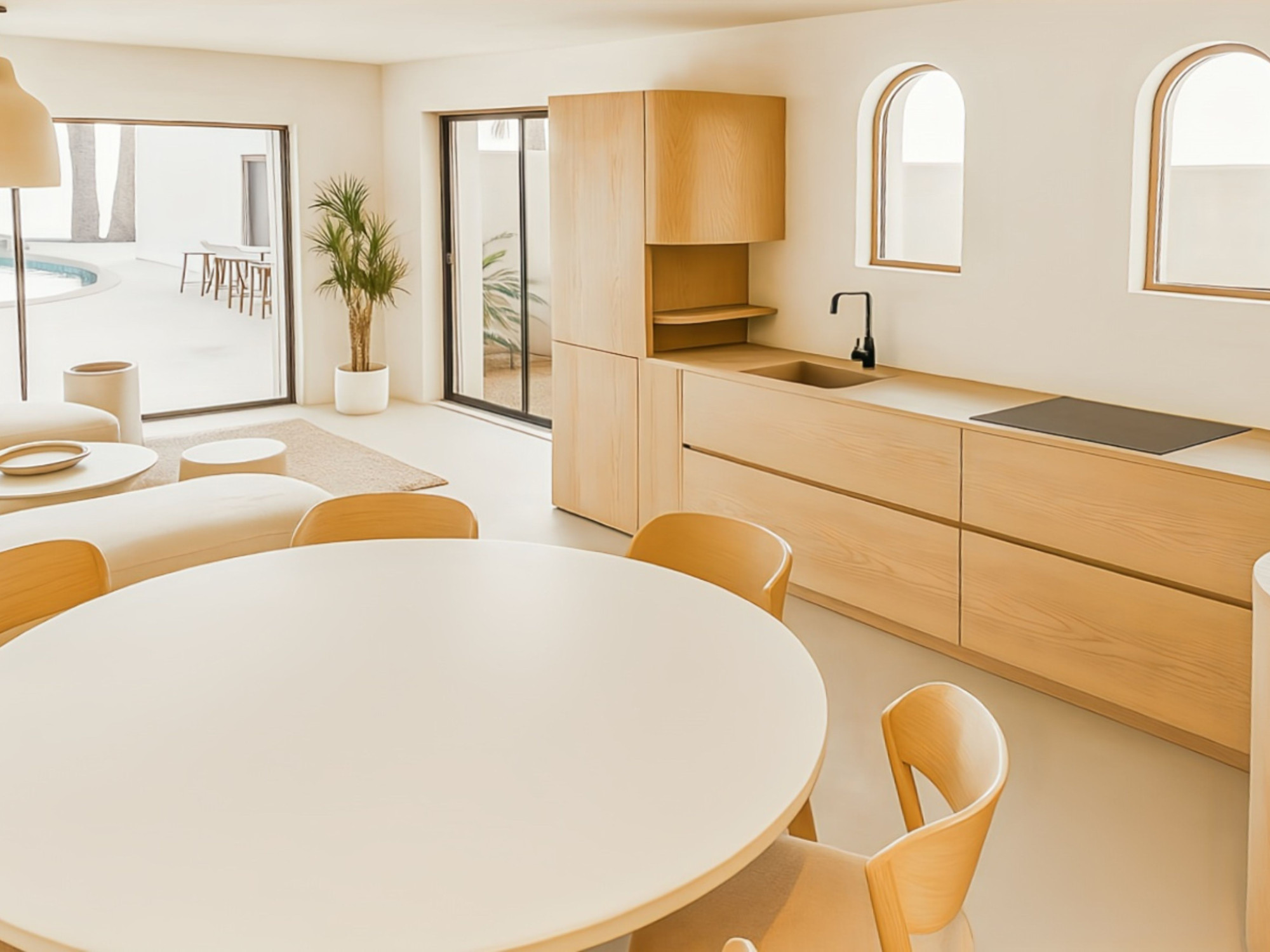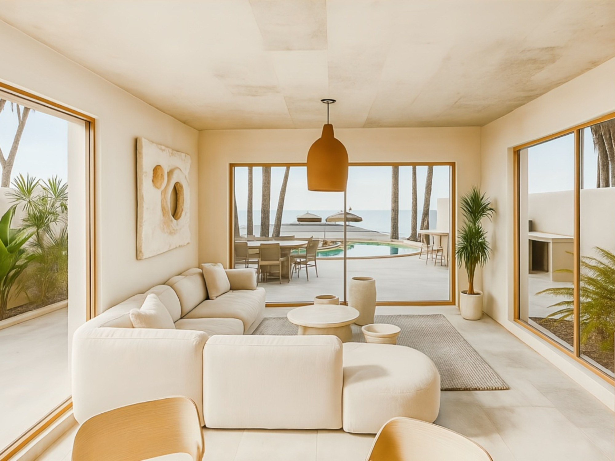 La villa fait 220 m² habitables sur une parcelle de 520 m², livrée clés en main, entièrement meublée et équipée. Les grandes ouvertures vitrées sur le canal inondent de lumière le salon et la cuisine, un espace de vie fluide et généreux. Quatre chambres, quatre salles d'eau avec WC et un WC indépendant, une distribution qui fonctionne aussi bien en résidence principale qu'en maison de vacances.